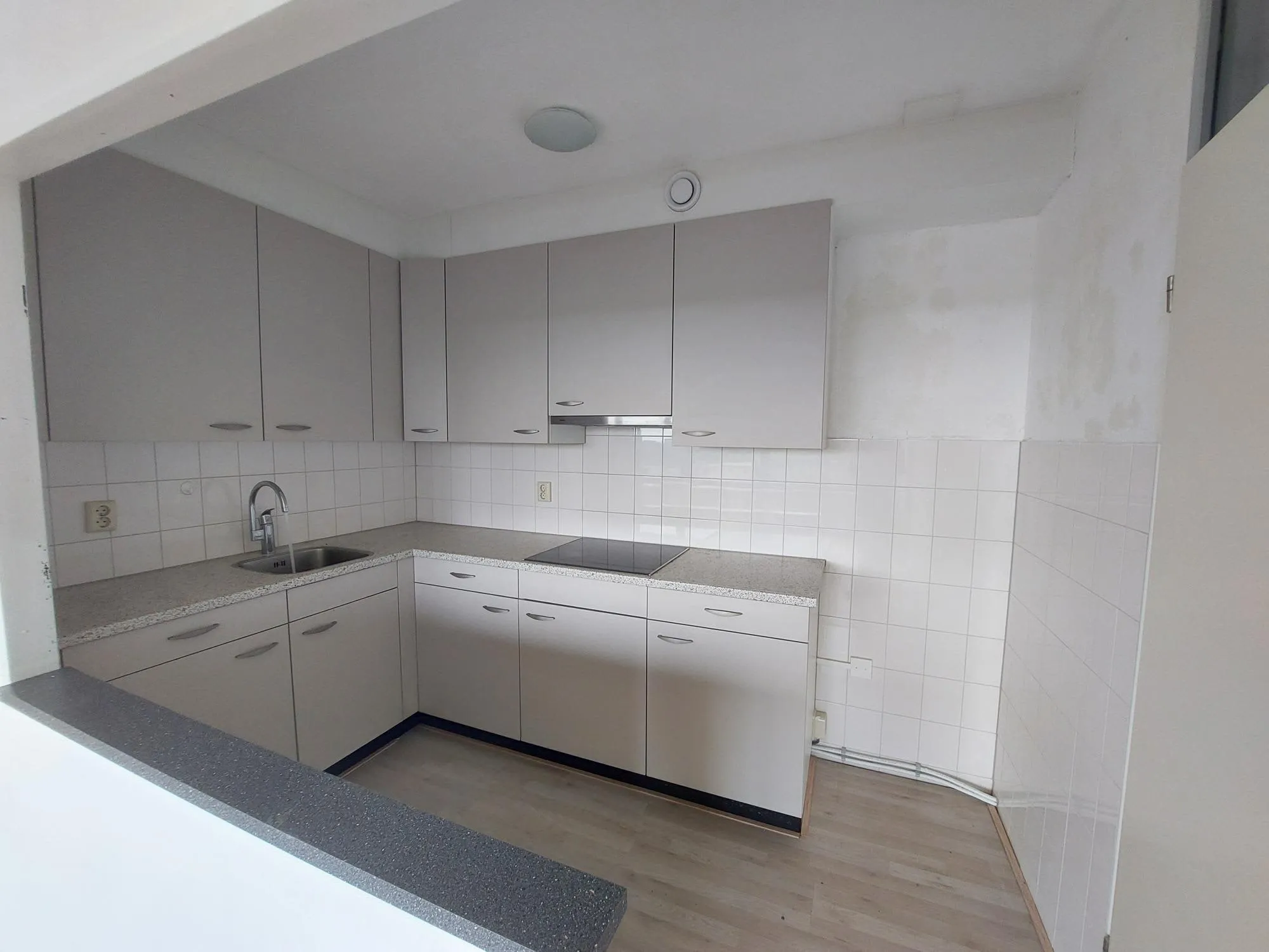 In de woning zit een keuken met inbouw kookplaat (elektrische) en afzuigkap van ongeveer 1,5 jaar oud. De kookplaat en afzuigkap zijn eigendom van Omnia Wonen en zitten standaard in de woning.