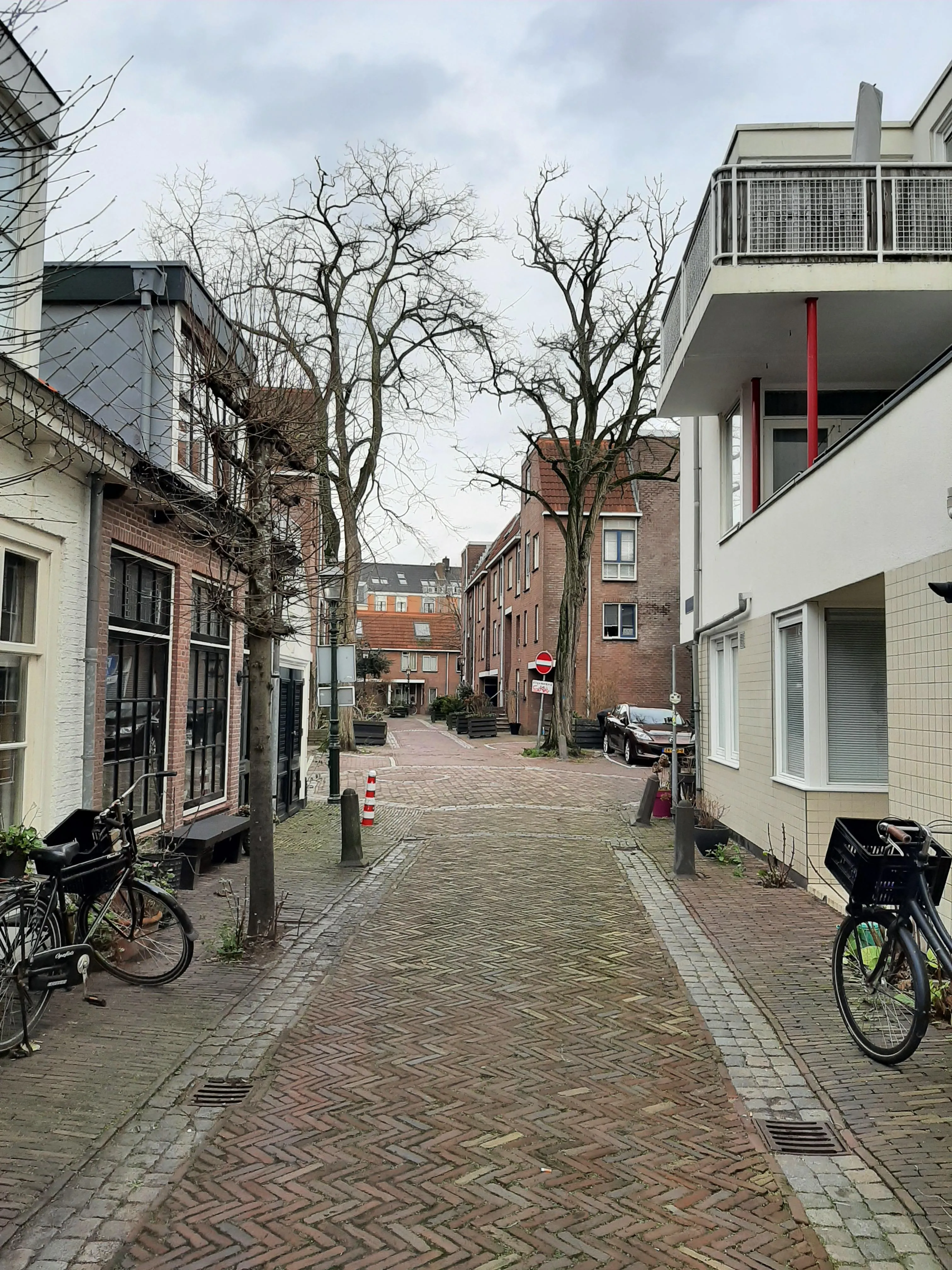 - De woonkamer ligt direct aan de straat, de slaapkamer direct aan de binnenplaats met bergingen.