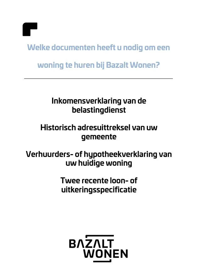 Let op! Als u geen inkomensverklaring heeft, kunt u geen woning van Bazalt Wonen huren.